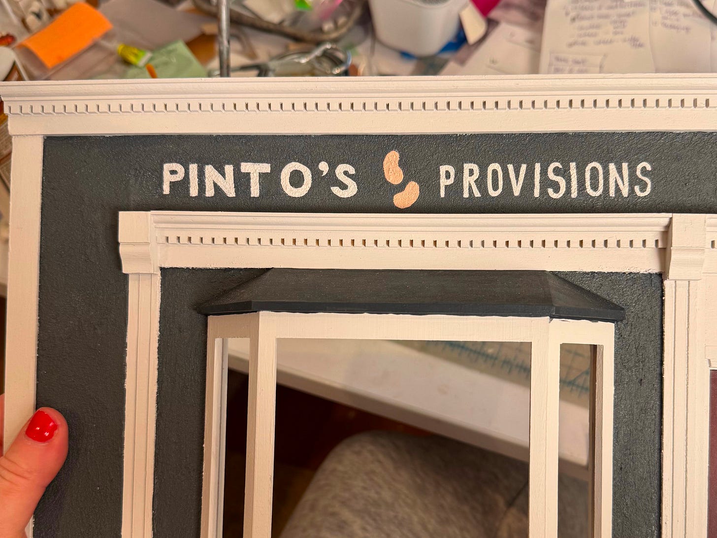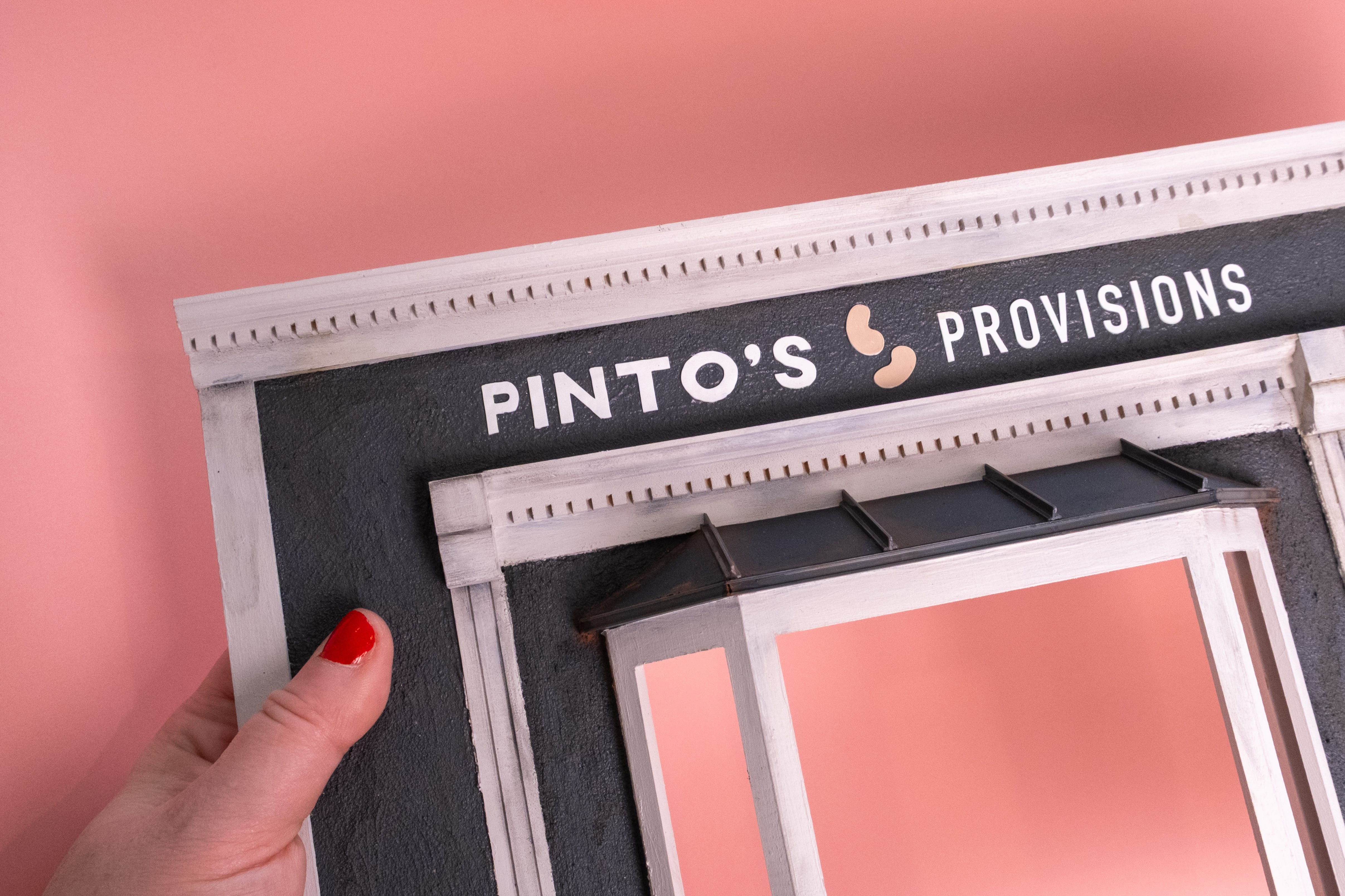 I decided to take a stab at hand-painting the store’s sign…and let’s just say it didn’t go as planned. It wasn’t terrible, but it wasn’t good enough.